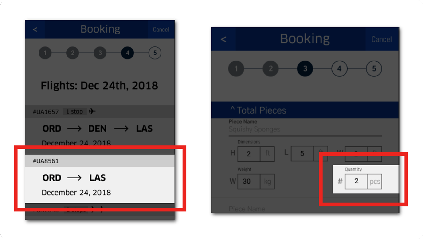 With higher levels of UI fidelity being added and a brand design system taking shape, our team had proper prototypes to test and present in front of users. Users proposed changes to different small and easy-to-miss details around flights and adding pieces.